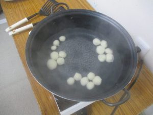 白玉粉と豆腐を混ぜてだんごを作りました。