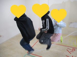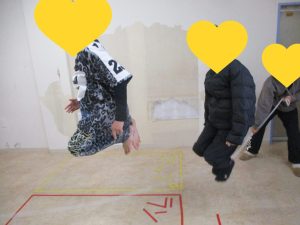 大寒に入ってから寒い日が続きますね。今回の大縄跳びは公園へは行かず、室内で行いました3人ずつグルーブを組み、10回跳ぶことを目標にがんばりました。チームワークよく連続して10回飛べるグループもあれば、合計で10回飛べたチームもありましたが、どのグループも目標をクリアすることができました。