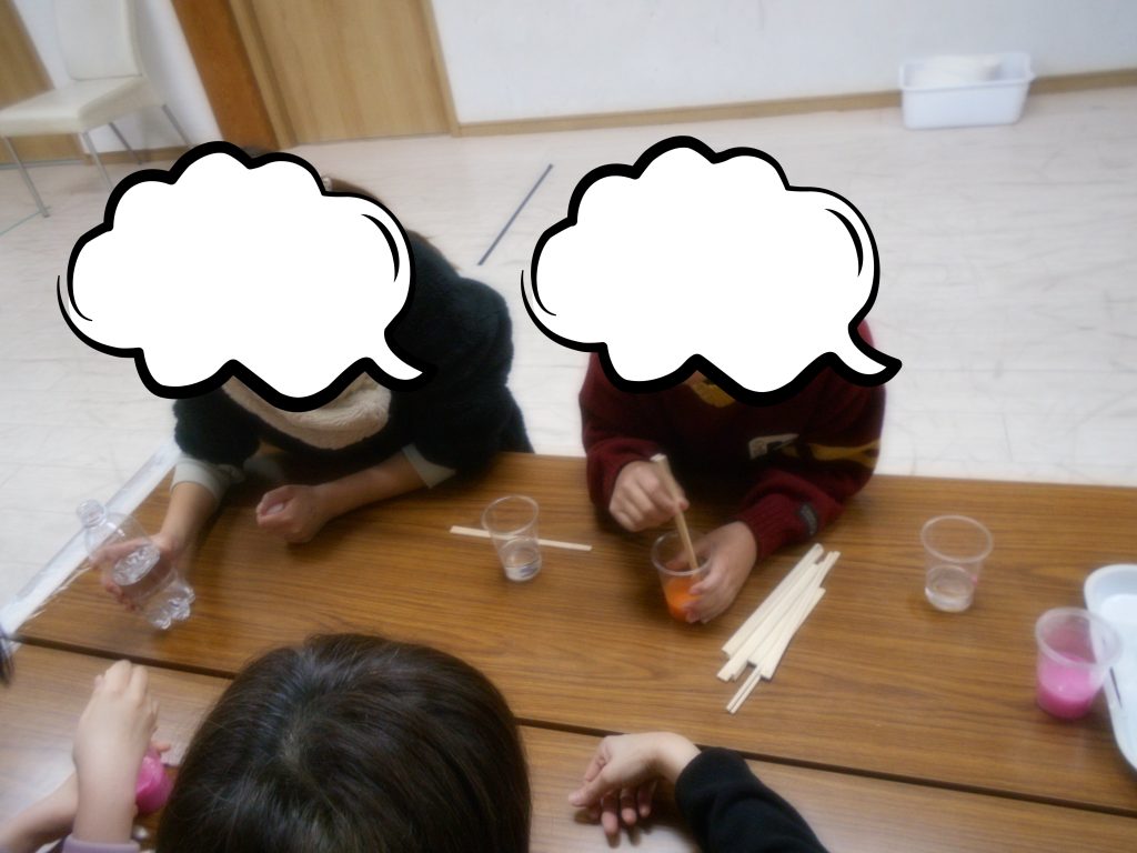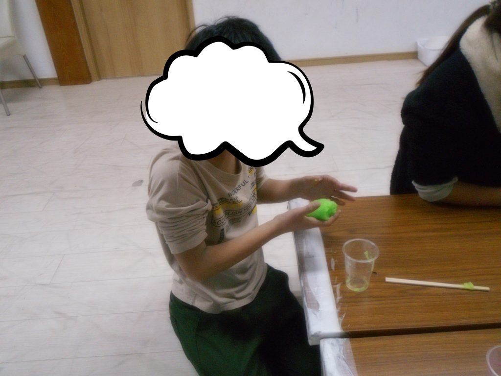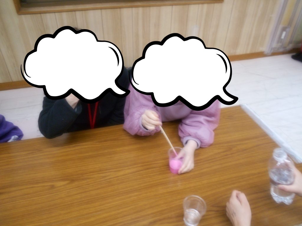 誕生日会の際に、誕生日の子のリクエストでスライム作りをしました。