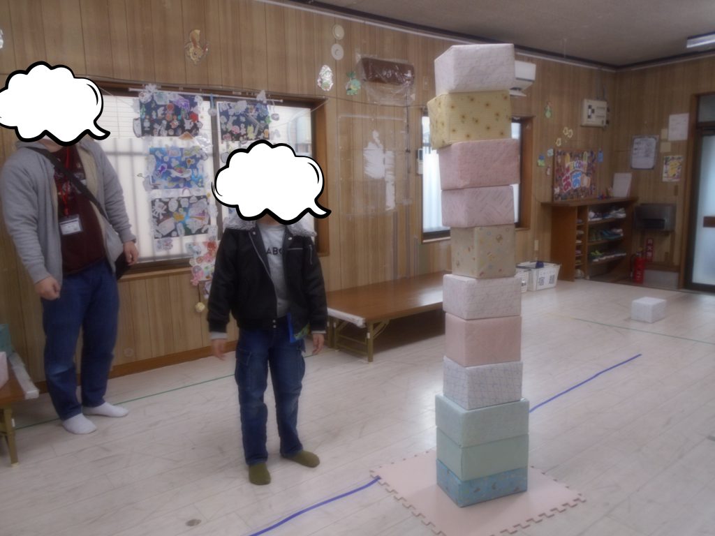 それぞれが考えながら高く積み上げることができました。