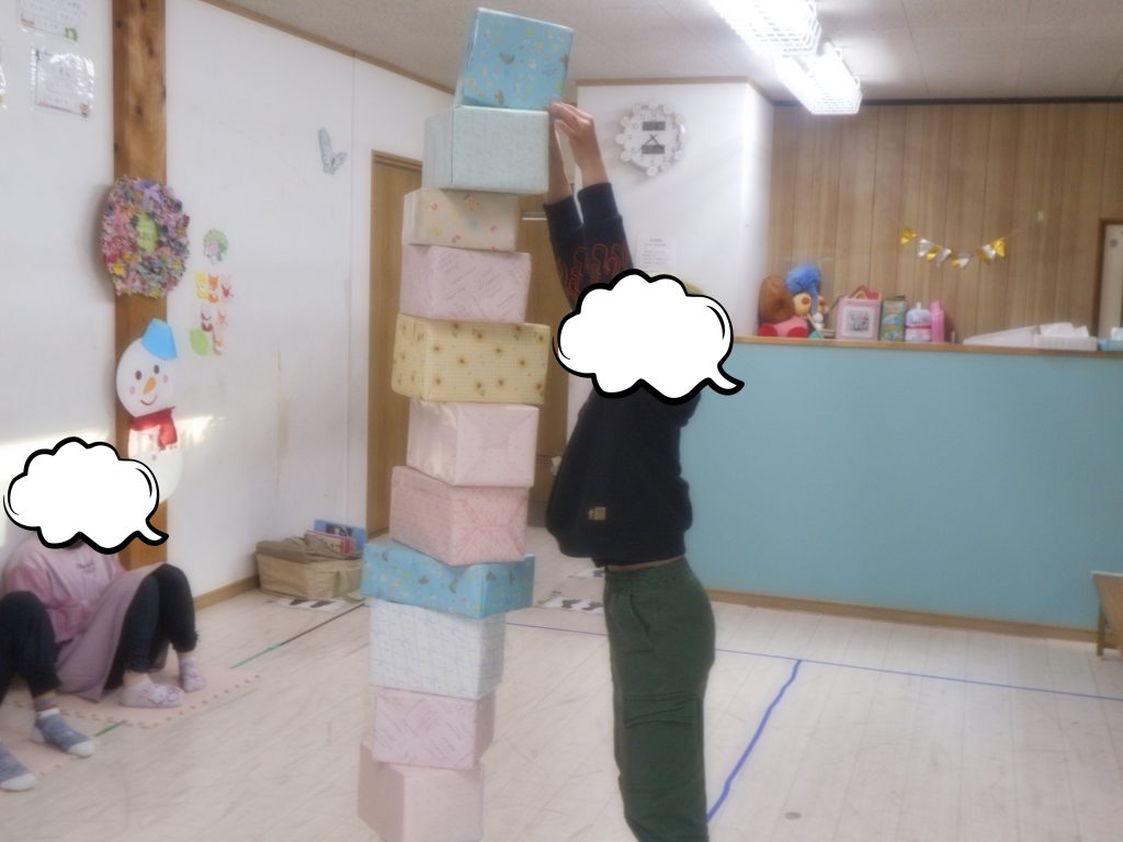 今月のココアクティブは箱つみゲームをしました。
